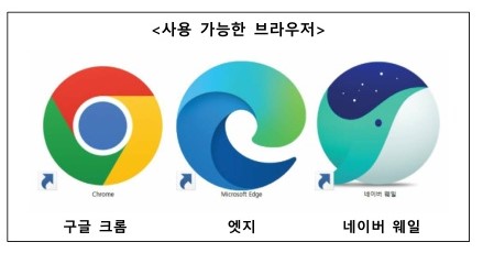 구글 크롬, 엣지, 네이버 웨일 중 선택하여 접속해 주시기 바랍니다.